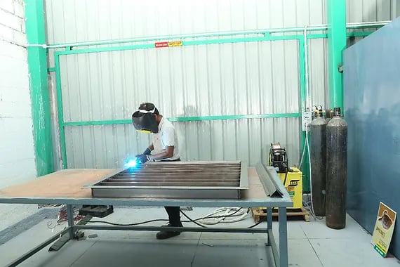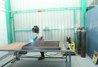 We have Mig welding setup with fabrication. MIG, TIG and Spot welding, which is crucial in the process of metal parts fabrication and components. Welding is done in accordance with international standards, such as AWS D1.1 and ASME Section IX. We are also performing leak-proof welding.